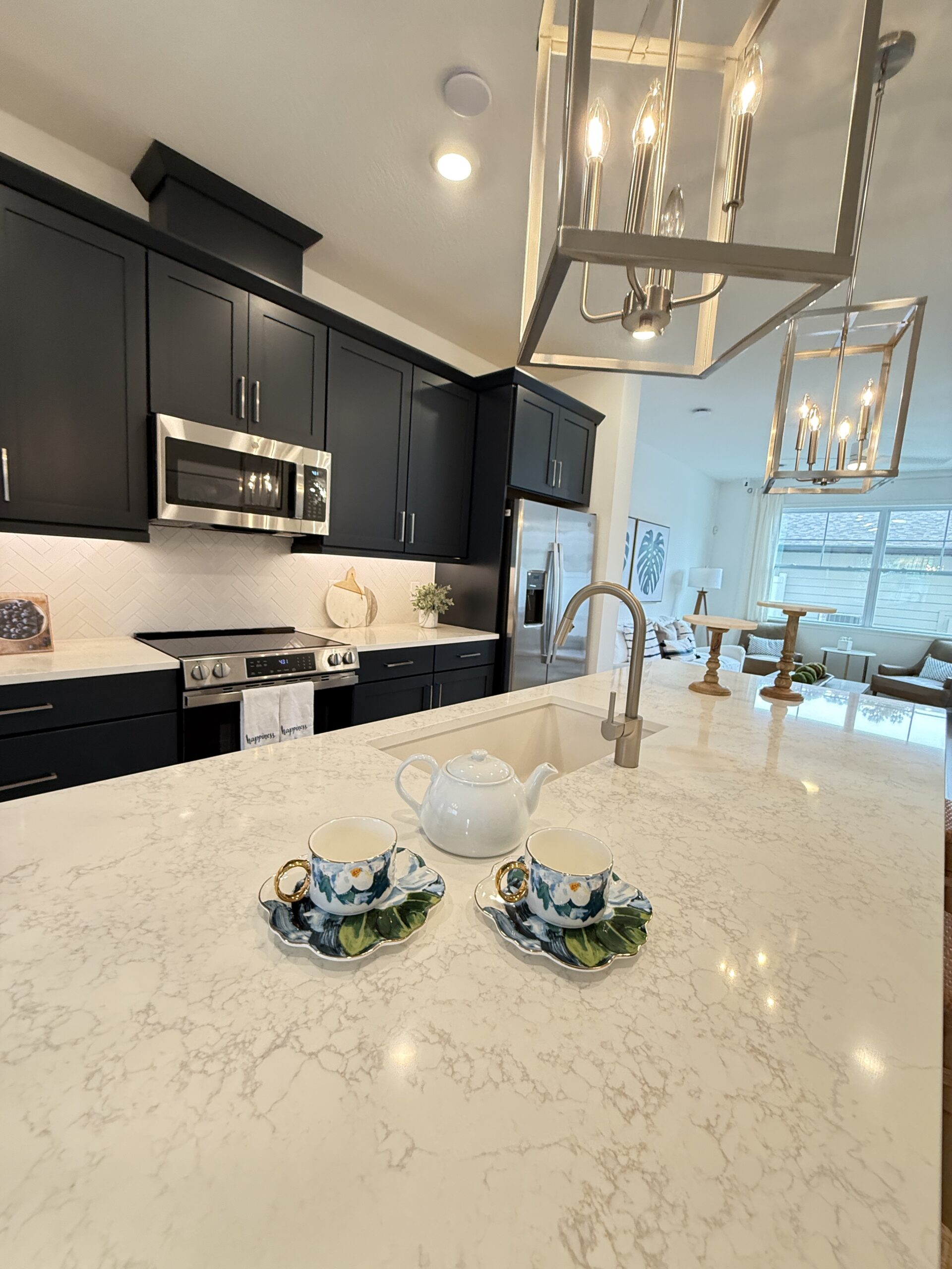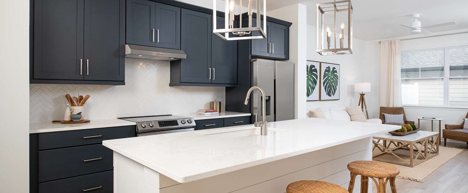 Planta principal «Open-Concept»: una fluidez perfecta entre la cocina (con isla central), el comedor y la sala familiar. Un espacio luminoso y acogedor diseñado para el everyday living y para recibir a tus seres queridos.